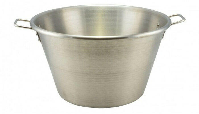 Rozsdamentes üst, Inox üst 40 liter  Anyaga: rozsdamentes acél Mérete: 52 cm átmérőjű felül (füllel: 63 cm), 33 cm átmérőjű alul; 30,5 cm magas Űrtartalma: ~ 40 liter Bruttó súlya: 5,72 kg Nettó súlya: 5,70 kg Tisztítása: semleges folyékony mosogatószerrel mossa el. Kerülje a karcolódást okozó szerek és eszközök használatát. A termék füle eltér a képen látottól!45 cm-es bográcsházhoz és 50cm-es üstházhoz alkalmas